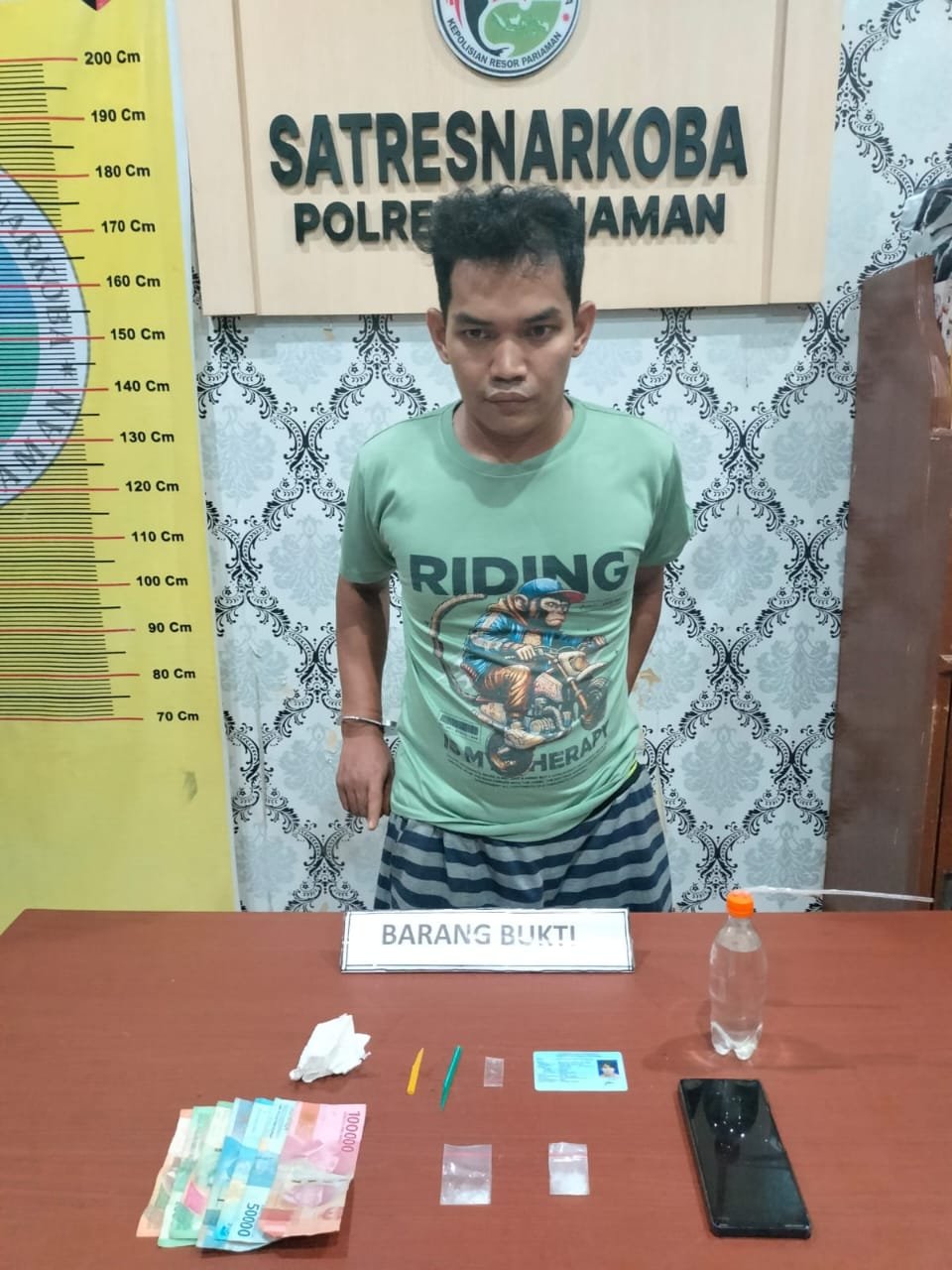 “Menurut keterangannya, pelaku membeli barang haram tersebut pada Sabtu 21 Februari 2026 sekira pukul 23:00 WIB. Ia mendapat sabu sebanyak satu kantong atau sekitar lima gram dengan harga Rp 2,8 juta, pembayaran melalui sistem transfer.