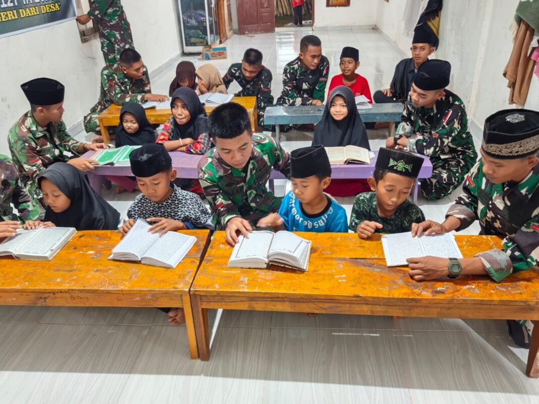 Desa (TMMD) ke-127 Kodim 0430/Banyuasin (BA) menggelar kegiatan keagamaan bersama anak-anak Desa Wonosari, Kecamatan Pulau Rimau. Kegiatan ini meliputi pembelajaran kitab suci dan pengajian bersama.