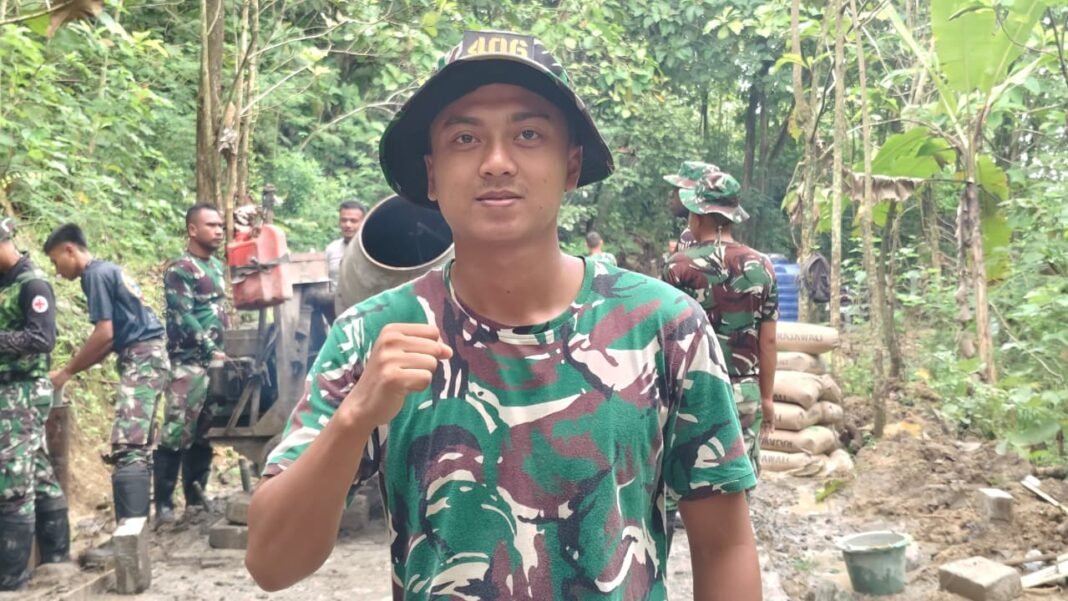 Prajurit yang menjabat sebagai Danru 1 Pleton 3 Yonif 406/Chandra Kusuma ini menunjukkan profesionalisme dan semangat luar biasa dalam memimpin anggotanya. Bersama rakyat Desa Cikuya, Kecamatan Banjarharjo, ia fokus mengawal pembangunan jalan rabat beton sepanjang 1,5 kilometer yang menjadi sasaran utama fisik TMMD kali ini.