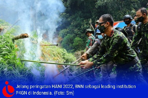 Jelang peringatan HANI 2022, Badan Narkotika Nasional (BNN) sebagai leading institution Pencegahan dan Pemberantasan Penyalahgunaan dan Peredaran Gelap Narkoba (P4GN) di Indonesia, menggencarkan upaya pemberantasan penyalahgunaan narkoba melalui berbagai cara, salah satunya pemusnahan ladang ganja.