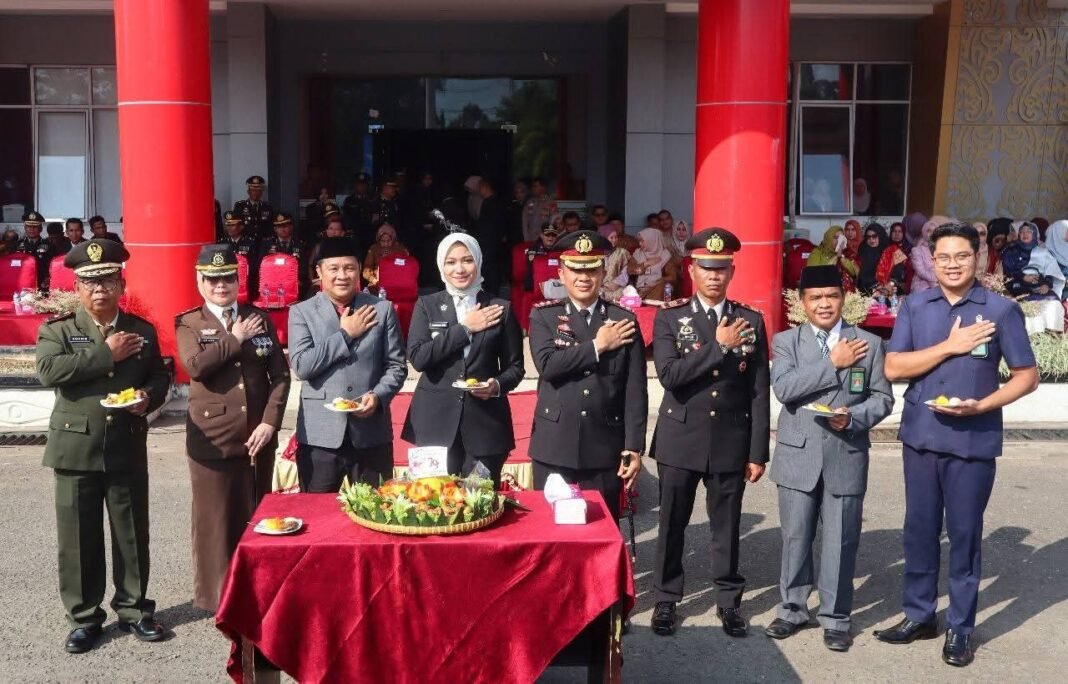 Upacara dihadiri oleh jajaran Forkopimda Dharmasraya, termasuk Bupati Annisa Suci Ramadhani, Ketua DPRD Jemi Hendra, dan Kajari Ariana Juliastuty, Dandim 0310/SSD diwakili Danramil Pulau Punjung, Mayor Sarinto.