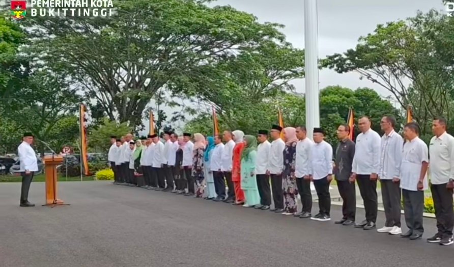 Bukittinggi — Wali Kota Bukittinggi, Ramlan Nurmatias, pimpin apel gabungan awal tahun 2026 yang diikuti seluruh Aparatur Sipil Negara (ASN) di lingkungan Pemerintah Kota Bukittinggi, serta BUMD. Apel berlangsung di halaman Balai Kota, Jumat, 2 Januari 2026.