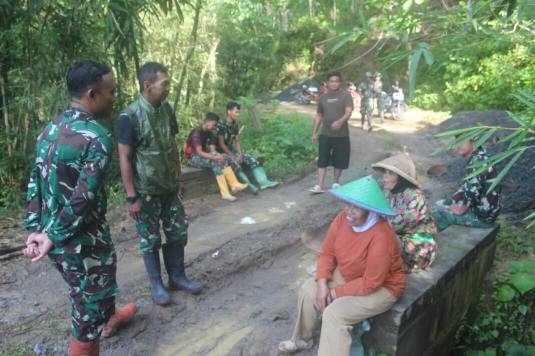 “Pak Tentara, nanti jalannya harus kuat ya… biar saya lewat bawa belanjaan nggak goyang lagi,” ujarnya sambil tertawa renyah.