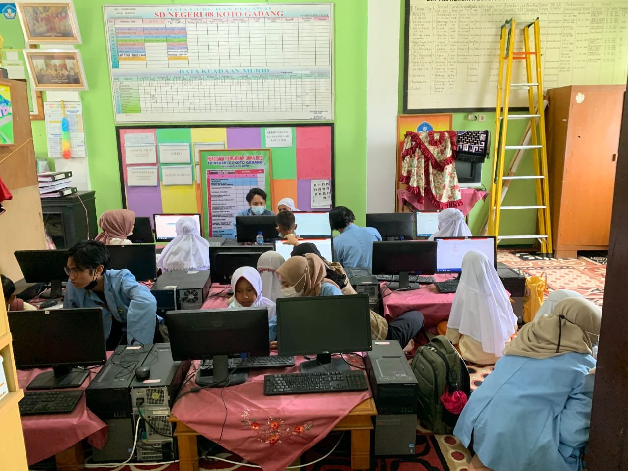 Selain melkasanakan sejumlah kegiatan bersama pemeribtah nagari dan masyarakat Kotogadang, para mahasiswa UNRI ini juga mengajarkan cara mengerjakan ujian berbasis komputer (BK), untuk murid kelas V SDN Kotogadang.