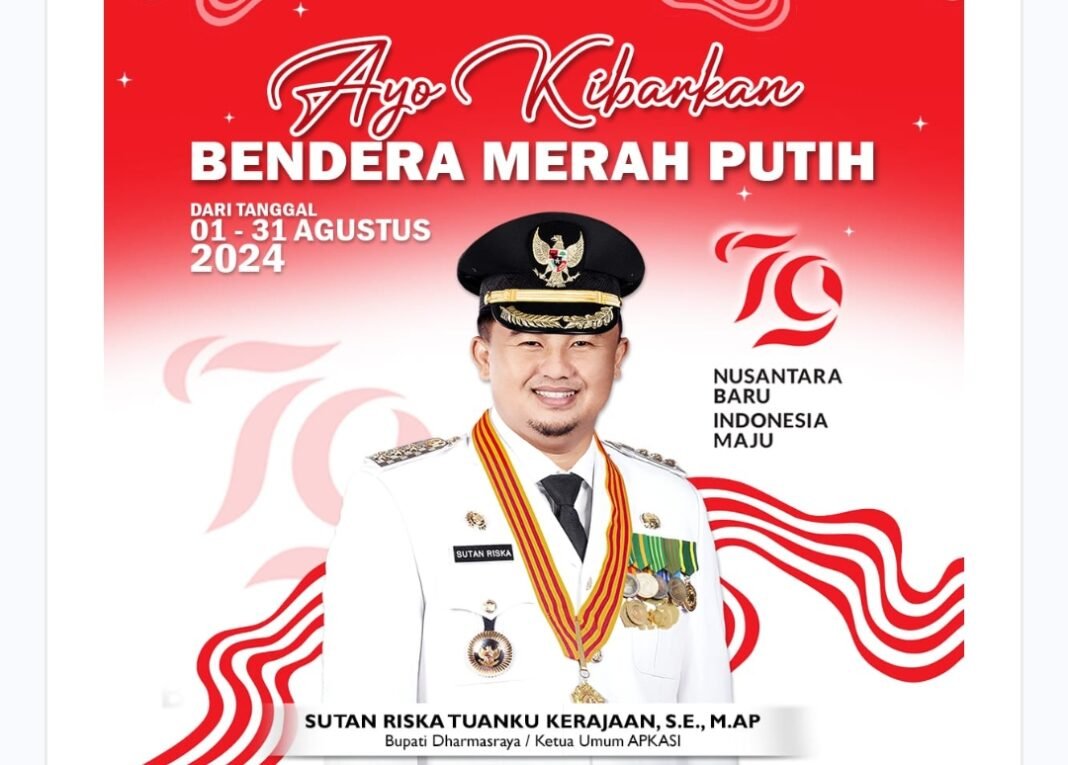 Dharmasraya, investigasi.news – Bupati Dharmasraya Sutan Riska Tuanku Kerajaan, mengajak dan menghimbau kepada seluruh masyarakat untuk dapat menaikkan bendera merah putih, selama sebulan penuh di Bulan Agustus ini. Hal itu disampaikannya kepada media ini, Kamis (01/08), dalam suatu acara.