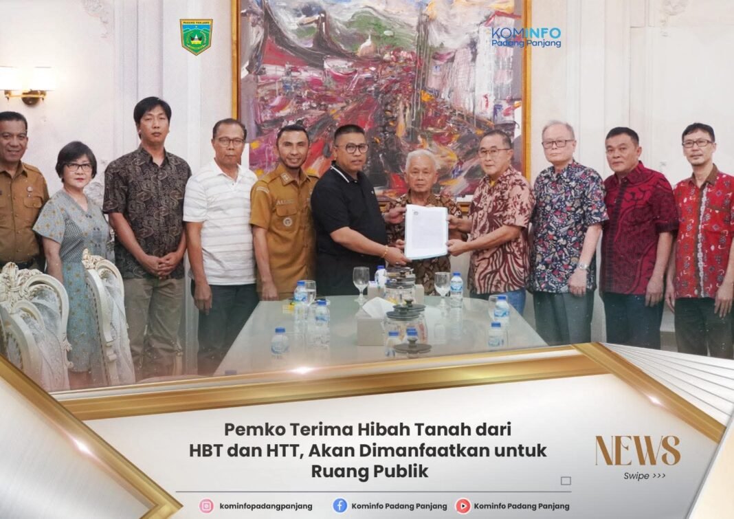 Padang Panjang, investigasi.news– Pemerintah Kota menerima hibah sebidang tanah seluas 153 meter persegi dari Himpunan Bersatu Teguh (HBT) dan Himpunan Tjinta Teman (HTT) Padang Panjang. Prosesi penyerahan berlangsung di Pendopo Rumah Dinas Wali Kota, Selasa (2/9/2025).