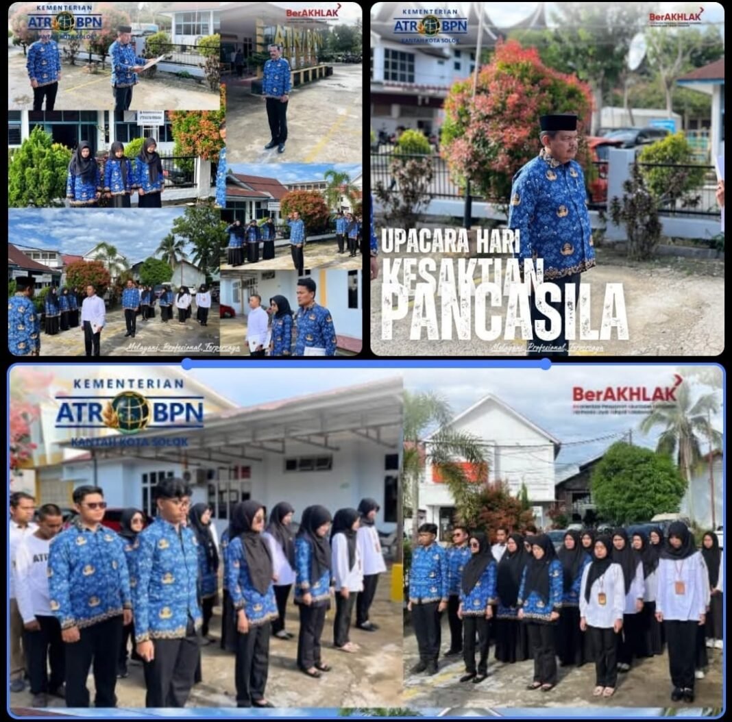 Kepala Kantor Pertanahan Kota Solok dalam sambutannya menekankan pentingnya menanamkan nilai-nilai Pancasila dalam kehidupan sehari-hari, khususnya dalam memberikan pelayanan terbaik kepada masyarakat. Ia juga mengajak seluruh pegawai untuk senantiasa menjaga integritas, profesionalitas, dan loyalitas dalam melaksanakan tugas.