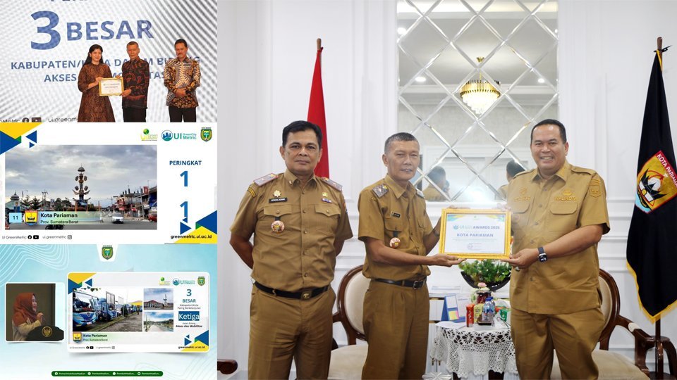 Kota Pariaman, investigasi.news — Pemerintah Kota Pariaman kembali menerima penghargaan UI GreenCity Matric Awards 2025. Kota Pariaman mendapatkan peringkat ke sebelas (11) sebagai Kabupaten/Kota Paling Berkelanjutan Tahun 2025 dan mendapatkan peringkat ketiga (3) untuk Bidang Akses dan Mobilitas.
