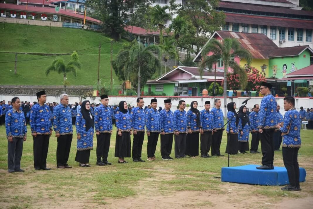Sawahlunto – Penjabat Sekretaris Daerah Kota Sawahlunto, Ezeddin Zain, SH, ME, memimpin apel gabungan Pemerintah Kota Sawahlunto dalam rangka memperingati Hari Ulang Tahun (HUT) Korps Pegawai Republik Indonesia (KORPRI) yang ke-53. Acara ini berlangsung pada Senin, 2 Desember 2024, di Lapangan Ombilin, dengan dihadiri oleh seluruh jajaran Aparatur Sipil Negara (ASN) di lingkungan Pemko Sawahlunto.