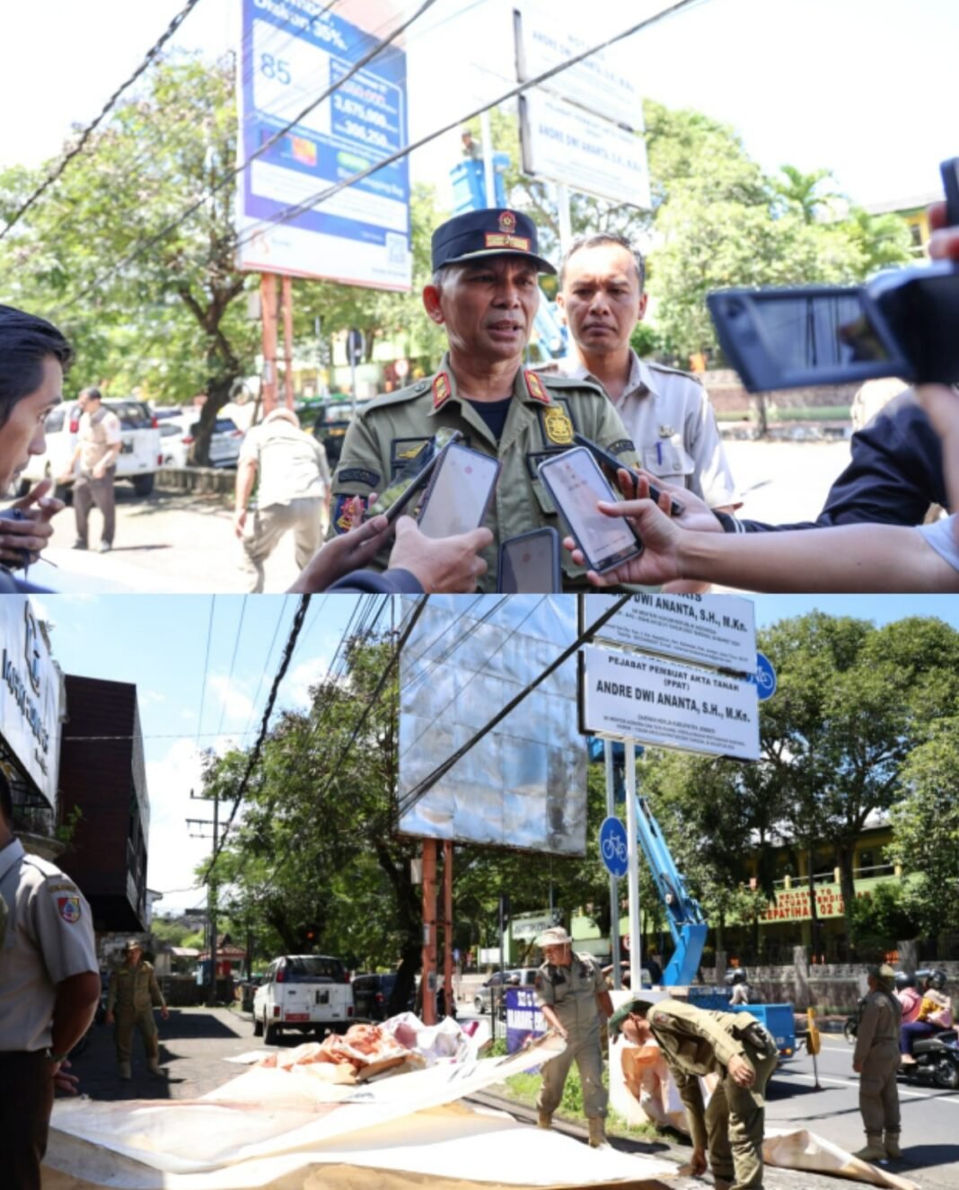 “Satu titik reklame tetap memiliki potensi PAD sekitar Rp13,5 juta per tahun. Jika izinnya mati sejak 2020, maka dalam enam tahun kerugian bisa mencapai Rp94,5 juta per titik. Hari ini saja, kami menindak tiga titik besar di dalam kota,” jelasnya.