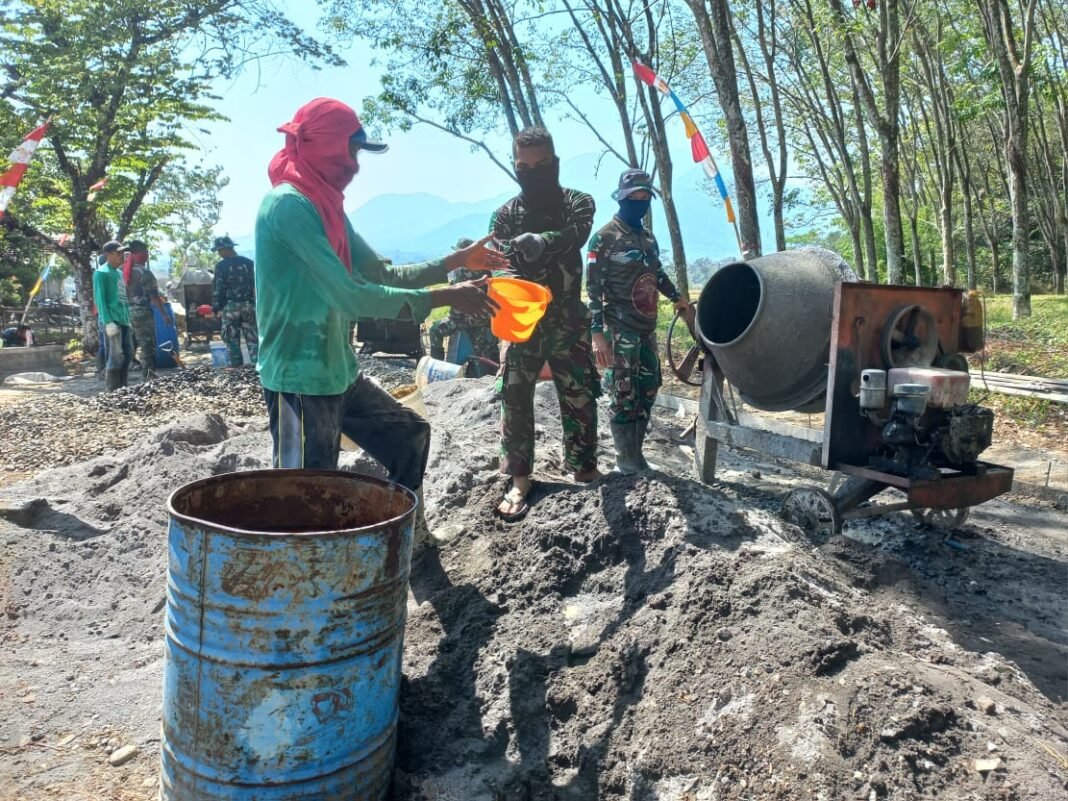 “Semua pengerjaan di laksanakan Secara gotong royong, baik oleh warga maupun anggota TNI, karena target utama selain membangun sasaran fisik untuk kesejahteraan masyarakat adalah kemanunggalan TNI dan rakyat melalui gotong royong saat pembangunannya.”, imbuh Lettu Endri.