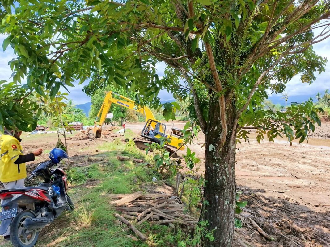 Untuk mengatasi hal ini, dua unit ekskavator diturunkan ke lokasi guna mengangkat tumpukan kayu dan menggali sedimen pasir yang menutup sebagian badan sungai.