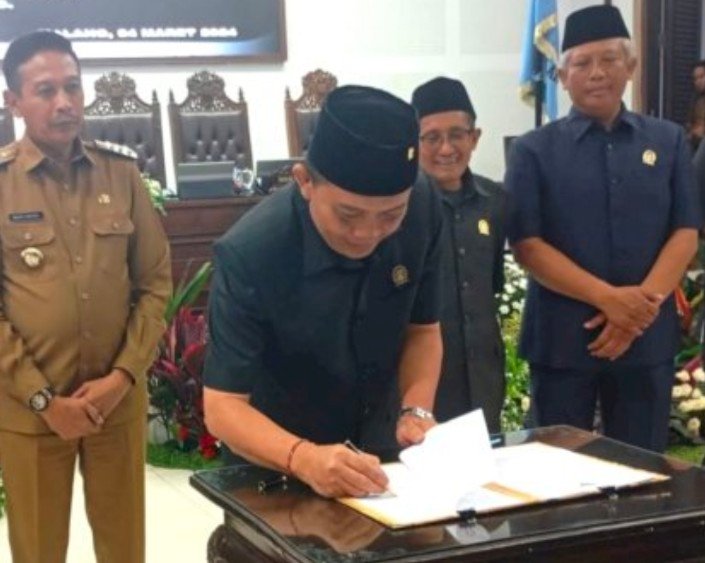 Pengesahan tersebut ditandai dengan penandatanganan bersama dengan Pemkot Malang. Penandatanganan dilakukan Ketua DPRD Kota Malang, I Made Riandiana Kartika dan Pj Wali Kota Malang Wahyu Hidayat.