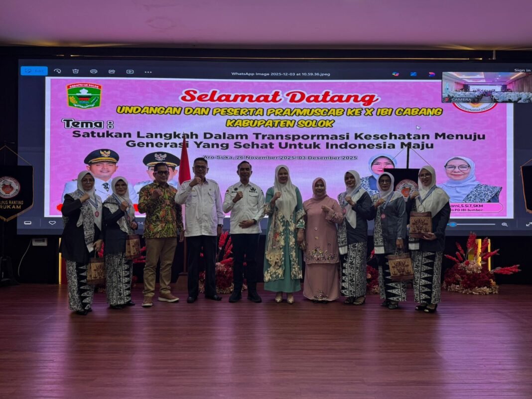 Arosuka, – Bupati Solok diwakili oleh Sekretaris Daerah Medison S.Sos.M.Si, menghadiri kegiatan Pra/Musyawarah Cabang (Muscab) ke-X Ikatan Bidan Indonesia (IBI) Cabang Kabupaten Solok. Acara tersebut berlangsung di Gedung C Sekda pada Rabu 3 Desember 2025. acar ini juga dihadiri oleh Ketua TP-PKK Kabupaten Solok Ny. Nia Jon Firman Pandu, Direktur RSUD para pengurus IBI, bidan dari berbagai wilayah kerja di Kabupaten Solok, serta para pemangku kepentingan di bidang kesehatan ibu dan anak.
