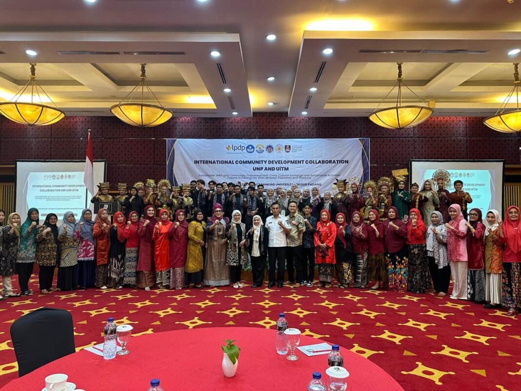 Padang, 3 Desember 2025 — Universitas Negeri Padang (UNP) bersama Universiti Teknologi MARA (UiTM) Malaysia sukses menyelenggarakan International Community Development Collaboration bertema “Sustainable SMEs and Community Empowerment: Cross-Cultural Exchange and Sustainable Activities Toward Achieving the SDGs Between Indonesia and Malaysia” di Grand Basko Hotel, Padang.