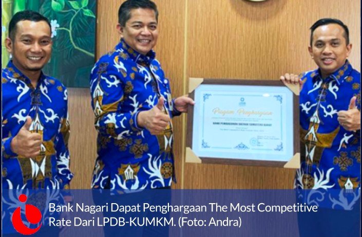 Padang, Investigasi.news – Bank Nagari meraih penghargaan The Most Competitive rate dari Lembaga Pengelola Dana Bergulir Koperasi, Usaha Mikro, Kecil, dan Menengah (LPDB-KUMKM) yang merupakan lembaga yang dibentuk oleh Kementerian Koperasi dan UKM.