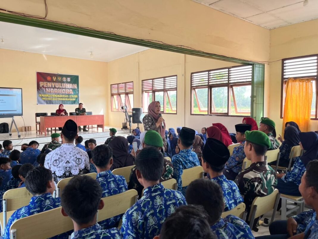 BANYUASIN, investigasi.news – Dalam rangka mendukung keberhasilan Program TMMD ke-127, Ketua Persit KCK Cabang LIII Dim 0430 Koorcab Rem 044 PD/Sriwijaya, Ny. Dian Handoyo, turut aktif berpartisipasi dalam kegiatan nonfisik dengan memberikan penyuluhan tentang bahaya narkoba kepada para siswa-siswi SMP Negeri 3 Pulau Rimau, Desa Wonosari, Kecamatan Pulau Rimau, Kabupaten Banyuasin.