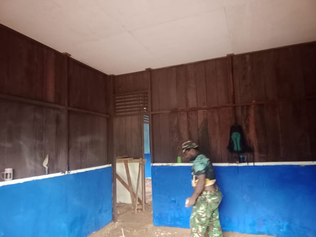 Mappi, investigasi.news – Rumah milik Bapak Yohanis Boskow Avu di Kampung Yibin menunjukkan perkembangan yang cukup signifikan. Pada hari ke-24 pelaksanaan TMMD ke-127 Kodim 1704/Mappi, pekerjaan utama yang dilakukan meliputi pemasangan plafon dan pengecatan dinding rumah. Pekerjaan ini dilakukan secara telaten dan penuh semangat agar rumah segera selesai dan dapat ditempati.