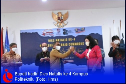 Bupati Mabar mengucapkan selamat ulang tahun ke-4. Poltek El Bajo Commodus, tetaplah menjadi lembaga pendidikan vokasi yang unggul, berdaya saing, kreatif, inovatif dan adaptif terhadap perekembangan ilmu perngetahuan, teknologi dan industry, bagi Manggarai Barat khususnya dan masyarakat luas pada umumnya.