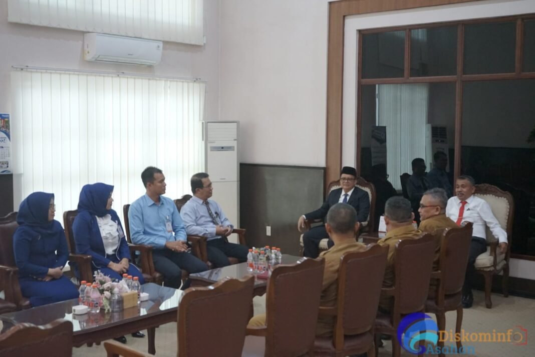 Asahan, investigasi.news-Pimpinan PT BANK SUMUT Cabang Kisaran Muhammad Sadli bersama jajarannya melakukan kunjungan keruang kerja Pjs Bupati Asahan Kantor Bupati Asahan, Senin (04/11/2024). Kunjungan ini disambut hangat oleh Pjs Bupati Asahan Drs Basarin Tanjung MSi, Kepala BPKAD Kabupaten Asahan, Plt Kadis Kominfo Kabupaten Asahan dan Kabag Protokol Setdakab Asahan.