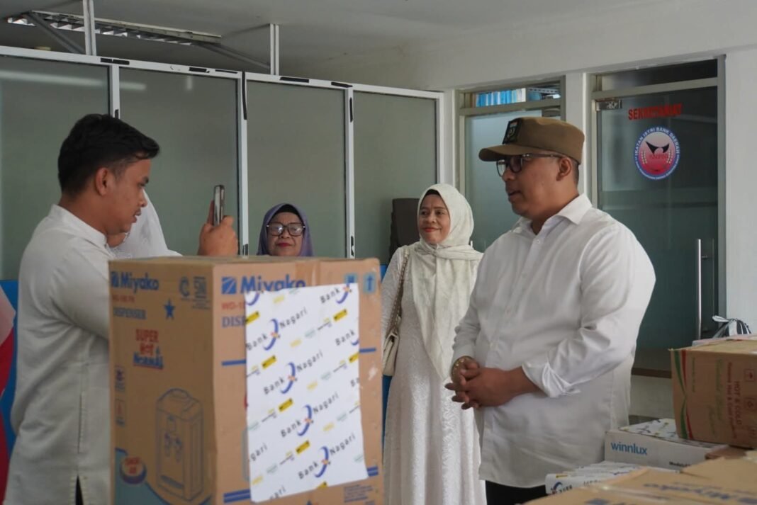 “Apalagi ini untuk masyarakat kita yang terdampak. Sesuai slogan Bank Nagari, Bersama Membina Citra Membangun Negeri. Minggu lalu kami menyerahkan bantuan seng bagi warga yang atap rumahnya rusak akibat angin kencang, dan hari ini kami kembali menyerahkan bantuan peralatan rumah tangga. Semoga bisa meringankan para korban,” katanya.