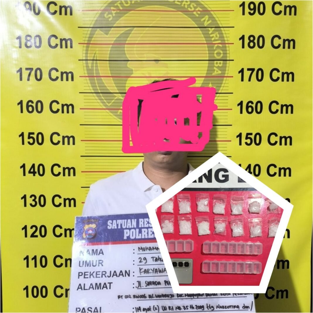 Secara keseluruhan, petugas mengamankan 20 paket diduga narkotika jenis sabu yang dibungkus dengan plastik klip bening.