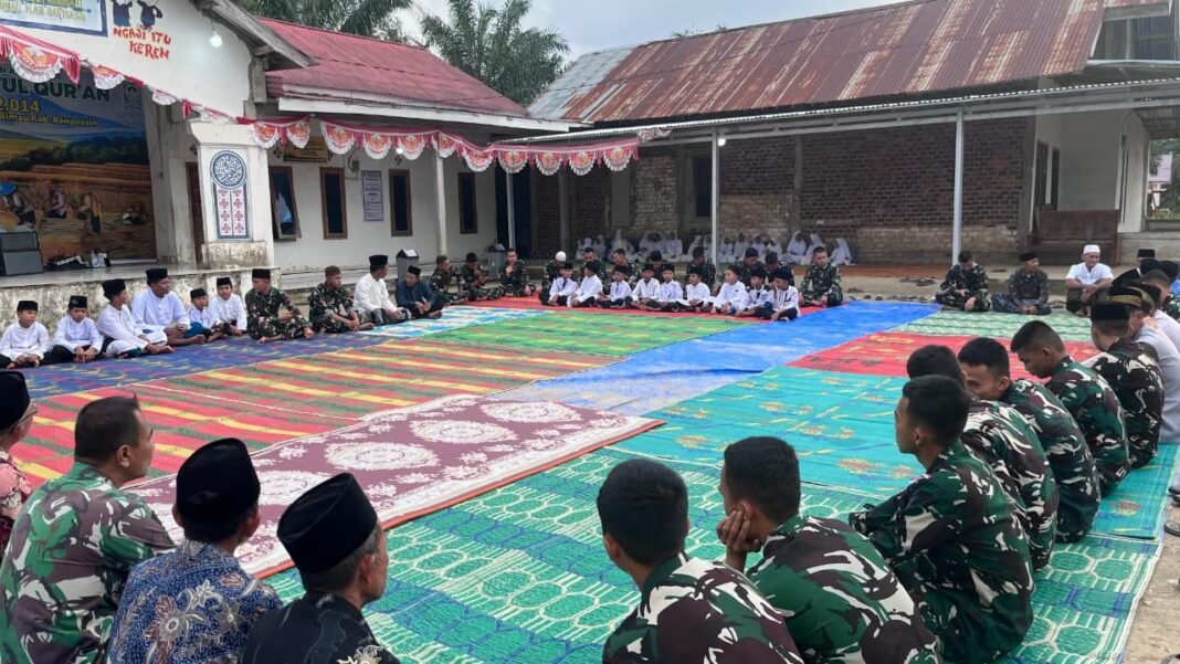 BANYUASIN, investigasi.news – Anggota Satuan Tugas TNI Manunggal Membangun Desa (TMMD) ke-127 Kodim 0430/Banyuasin menunjukkan kedekatan dengan masyarakat melalui kegiatan buka puasa bersama yang digelar di Sekolah TK-TPA Hidayatul Qur’an, Desa Wonosari, Kecamatan Pulau Rimau, Kabupaten Banyuasin.