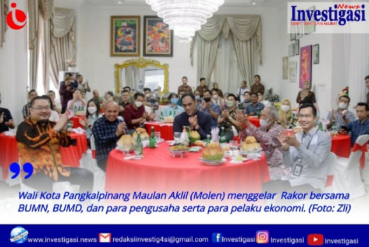 PANGKALPINANG, Investigasi.news-Wali Kota Pangkalpinang Maulan Aklil (Molen) menggelar Rapat Koordinasi (Rakor) bersama BUMN, BUMD, dan para pengusaha serta para pelaku ekonomi, Sabtu (6/8/2022) di rumah dinas. Pertemuan tersebut dalam rangka membahas pembangunan dan pengembangan Kota Pangkalpinang.