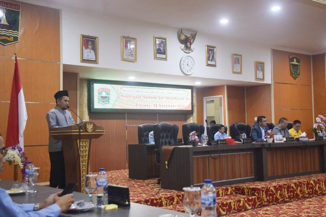 Arosuka – Dewan Perwakilan Rakyat Daerah (DPRD) Kabupaten Solok resmi mengesahkan Rancangan Peraturan Daerah (Ranperda) tentang Anggaran Pendapatan dan Belanja Daerah (APBD) Kabupaten Solok Tahun Anggaran 2026. Pengesahan dilakukan dalam rapat paripurna terbuka yang digelar di ruang sidang utama DPRD Kabupaten Solok, Kamis (6/11/2025).