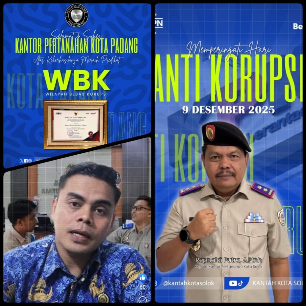 Kota Solok. InvestigasiNews. Dalam rangka mendukung tugas Kementerian Agraria dan Tata Ruang/Badan Pertanahan Nasional dalam menyelenggarakan urusan pemerintahan di bidang agraria dan tata ruang, serta memberikan pelayanan publik yang berkualitas, maka berdasarkan amanat Pasal 38 Undang-Undang Nomor 25 Tahun 2009 tentang Pelayanan Publik serta Peraturan Menteri Pendayagunaan Aparatur Negara dan Reformasi Birokrasi Nomor 14 Tahun 2017 tentang Pedoman Penyusunan Survei Kepuasan Masyarakat, Kantor Pertanahan Kota Solok bertanggung jawab melaksanakan kegiatan Survei Kepuasan Masyarakat melalui Survei Persepsi Kualitas Pelayanan (SPKP/IKM) dan Survei Persepsi Anti Korupsi (SPAK/IPK).