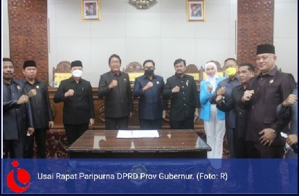 Selanjutnya, pimpinan rapat Ihsan Fajri mengambil Keputusan Bersama atas disetujui Raperda Pengelolaan Barang Milik Daerah menjadi Perda yang kemudian dilakukan Penandatanganan Keputusan Bersama, yang ditandatangani seluruh pimpinan dewan provinsi dan disaksikan Gubernur Rohidin, unsur Forkopimda serta Ketua-Ketua Fraksi.