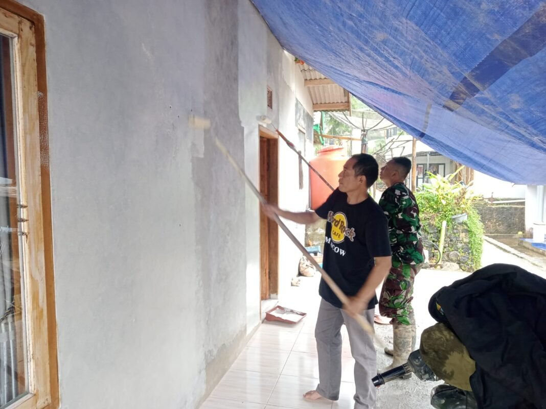 Bandung, investigasi.news –Kegiatan Sasaran fisik dalam rangka pelaksanaan TMMD Reguler ke-127 Tahun 2026 oleh Kodim 0624/Kabupaten Bandung menunjukkan progres yang sangat menggembirakan. Bertempat di rumah Bapak Maman di Kampung Sundamekar RT.02 RW.12, Desa Cipelah, Kecamatan Rancabali, anggota Satgas TMMD bersama masyarakat setempat melaksanakan proses finishing pengecatan dinding rumah yang merupakan bagian dari program bedah rumah (RTLH). Sabtu (7/3).