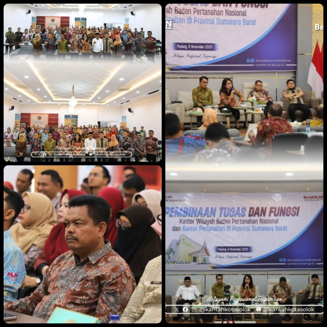 Kota Solok, investigasi.news- Pada Kamis, 6 November 2025, Kepala Kantor Pertanahan Kota Solok beserta jajaran mengikuti kegiatan Monitoring dan Evaluasi (Monev) Capaian Kinerja yang diselenggarakan oleh Kantor Wilayah Badan Pertanahan Nasional Provinsi Sumatera Barat.