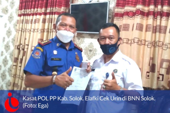 Kasat Pol PP Elafki langsung melakukan Cek Urin di Kantor BNN Solok untuk memastikan kesehatan dirinya terhadap pengaruh adanya zat Narkotika di dalam tubuh, Alhamdulillah dari hasil tes urin tadi saya Negatif dari zat Narkotika, katanya. Bahkan menurutnya tidak ada salahnya dan tidak usah kita takut untuk memeriksakan diri dari pengaruh Zat Narkotika di BNN ini, karena di lapangan berbagai macam makanan dan minuman yang kita konsumsi, dan kita tidak bisa memastikan ada zat apa saja dalam makanan dan minuman yang kita konsumsi tersebut, maka dari itu saya menghimbau kepada semua jajaran Kesatuan Polisi Pamong Praja Kabupaten Solok khususnya dan secara umum pada masyarakat kabupaten Solok mari bersama kita jaga keluarga dan diri kita dari pengaruh Narkoba yang merupakan Zat yang berbahaya bagi tubuh dan kesehatan kita. Mari kita periksa diri, cek urin di BNN atau di Rumah Sakit dan Laboratorium terdekat untuk mendeteksi diri terhadap Narkoba. Terangnya.