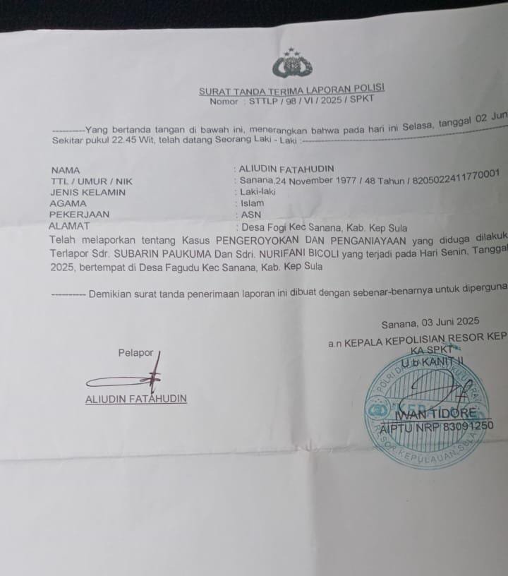 “Untuk Perkara tersebut, atas nama SP dan NB yang disangkakan melakukan penganiyaan terhadap korban atas nama Alif, Kami penuntut Umum baru menerima SPDP, sementara berkasnya belum dikirimkan oleh Penyidik”, ungkap Pihak Kejari Sula (8/3).