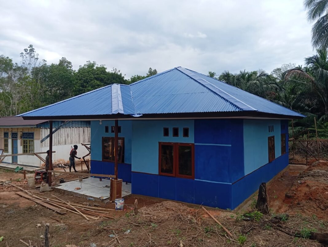 Material pintu dan cendela sudah terpasang secara rapih, memperkuat struktur rumah dan meningkatkan estetika bangunan. Pembangunan rumah ini merupakan bagian dari upaya meningkatkan kesejahteraan masyarakat di wilayah tersebut.