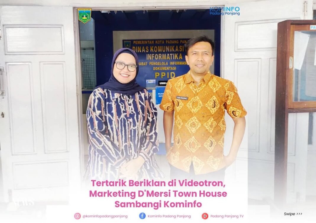 Padang Panjang, investigasi.news – Dalam upaya memperluas jangkauan promosi dan sinergi dengan Pemerintah Kota, Marketing D’Mersi Town House, Ica Maharani kunjungi Dinas Komunikasi dan Informatika (Kominfo), Kamis (8/5/2025).