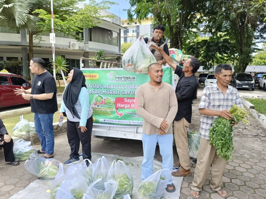 Padang, investigasi.news — Ratusan paket sayuran segar hasil panen petani milenial ludes terjual hanya dalam waktu empat jam di halaman Kantor Gubernur Sumatera Barat (Sumbar), Rabu (8/10/2025). Penjual dan pembeli mengaku sama-sama mendapat manfaat positif dari kegiatan tersebut, mereka pun mengapresiasi terobosan baru yang dilakukan Pemprov Sumbar tersebut.