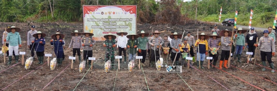 Murung Raya, investigasi.news– Pemerintah Kabupaten (Pemkab) Murung Raya terus memperkuat langkah nyata dalam mendukung program nasional ketahanan pangan. Bersama TNI, Polri, dan stakeholder terkait, Pemkab Mura melaksanakan kegiatan Penanaman Jagung Serentak Kuartal IV yang dipusatkan di Desa Muara Jaan, Kecamatan Murung, Rabu (8/10/2025).