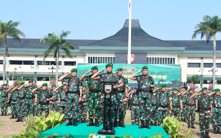 Semarang, investigasi.news – Panglima Kodam IV/Diponegoro Mayjen TNI Widi Prasetijono bersama Pejabat Utama serta Prajurit Kodam IV/Diponegoro mengikuti Apel Kesiapan Satuan TNI AD untuk pengamanan Pemilu 2024 yang dilaksanakan secara virtual dan dipimpin langsung oleh Kasad Jenderal TNI H. Agus Subiyanto, S.E., M.Si. Kegiatan Apel tersebut digelar terpusat di Lapangan Silang Monas, Jakarta dan diikuti secara Virtual di Lapangan Makodam IV/Diponegoro. Rabu (8/11/2023).