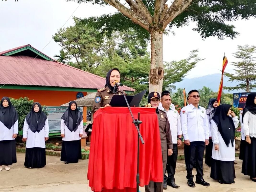 Kegiatan tersebut dipimpin langsung oleh Plt. Kasat Pol PP–Damkar Solok Selatan, Mimi Ariesma Putri, SH, yang hadir bersama jajaran untuk mengikuti upacara sekaligus menyampaikan amanat kepada siswa dan siswi. Kehadiran mereka menjadi bentuk perhatian pemerintah daerah dalam membangun kesadaran disiplin dan karakter positif di kalangan pelajar.