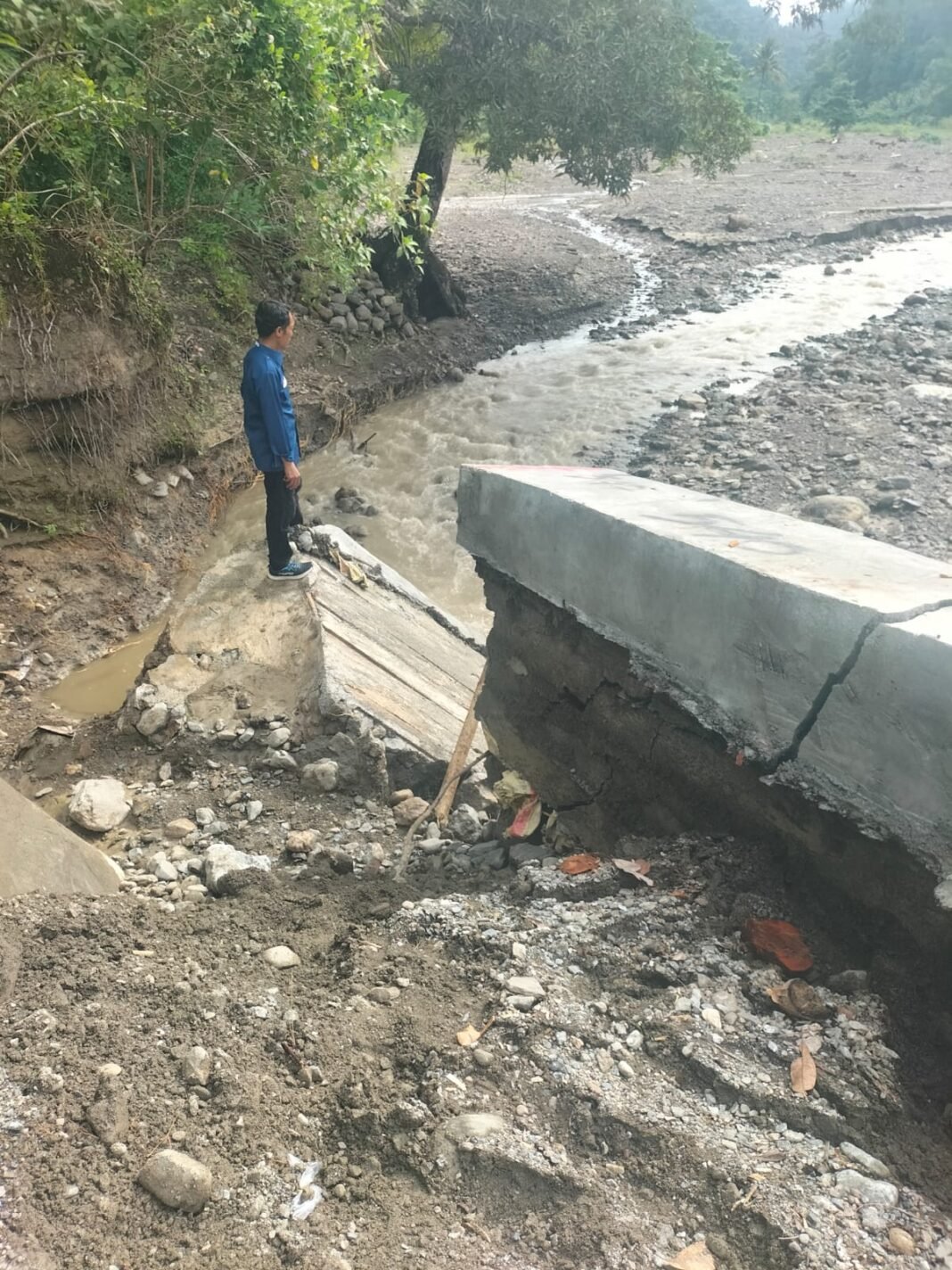 “Titik Talud yang patah sepanjang 5 meter, makanya tadi kita turun untuk memastikan kerusakan”, ujar Yoyo (8/4)