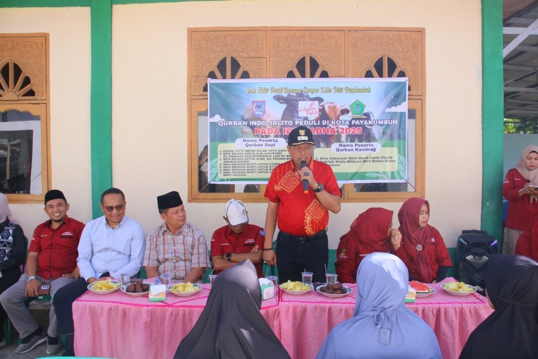 Payakumbuh, Investigasi.News – Indo Jalito Peduli menyalurkan hewan kurban berupa satu ekor sapi dan dua ekor kambing pada perayaan Idul Adha 1446 H, ke Musala Nurul Iman, Kelurahan Talang, Kecamatan Payakumbuh Barat, Minggu (08/06/2025).