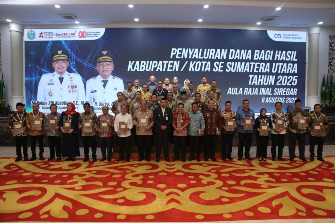 Kisaran, investigasi.news-8 Agustus 2025 — Pemerintah Kabupaten Asahan menerima penyaluran Dana Bagi Hasil (DBH) Tahun Anggaran 2025 dari Pemerintah Provinsi Sumatera Utara dalam kegiatan resmi yang digelar di Aula Raja Inal Siregar, Kantor Gubernur Sumut, Medan. Penyerahan DBH disampaikan langsung oleh Gubernur Sumatera Utara, M. Bobby Afif Nasution, kepada seluruh bupati dan wali kota se-Sumatera Utara. Untuk Kabupaten Asahan, DBH diterima langsung oleh Bupati Asahan, Taufik Zainal Abidin, S.Sos, M.Si.