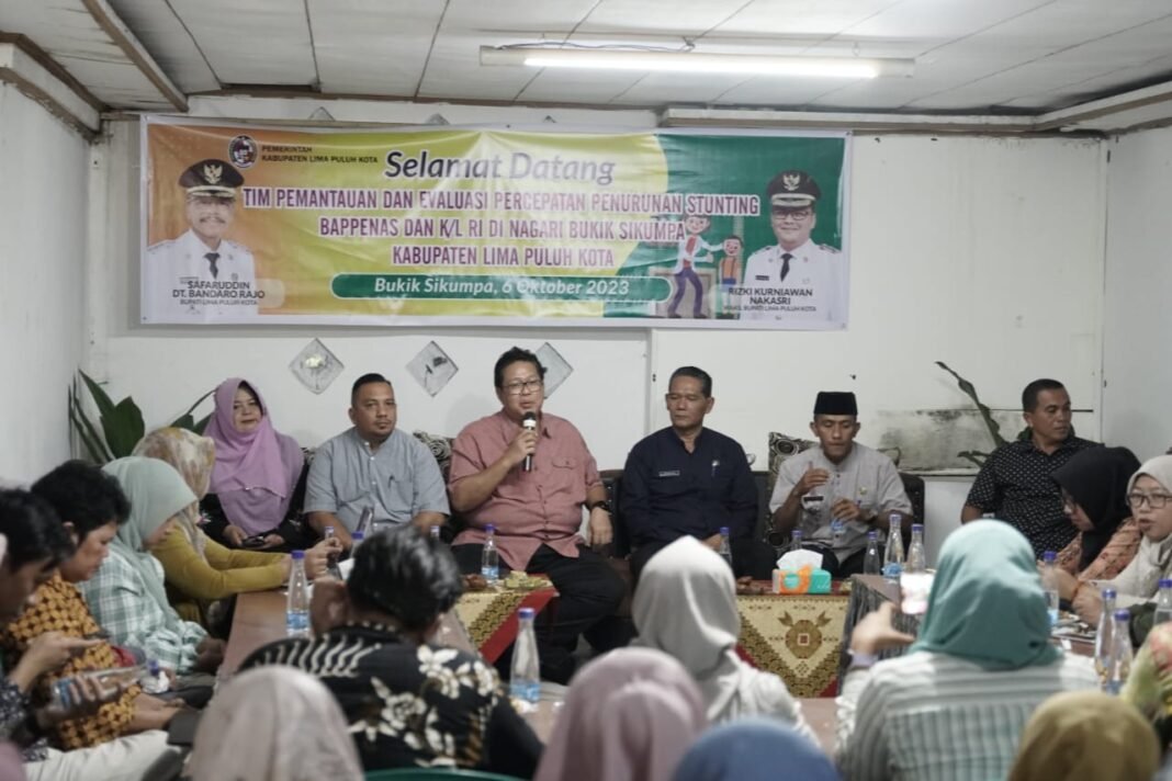 Limapuluh Kota, investigasi.news – Kinerja percepatan penurunan stunting di Kabupaten Limapuluh Kota mendapat perhatian besar dari Tim Percepatan Penurunan Stunting (TPPS) pusat yang terdiri dari Kementerian BAPPENAS, Kementerian Kesehatan, Kementerian Desa, Kementerian Dalam Negeri, dan BKKBN. Tim lintas kementerian tersebut sambangi Limapuluh Kota untuk melaksanakan studi lapangan dan uji coba metadata indikator stunting, Jum’at, (06/10/2023) di Nagari Bukik Sikumpa, Kecamatan Lareh Sago Halaban. Berkekuatan 17 orang, tim tersebut akan melihat dan memastikan kesamaan data di lapangan utamanya data ibu hamil, balita, dan remaja. Kabupaten Limapuluh Kota menjadi satu dari dua daerah di Indonesia yang mendapat kunjungan lapangan dari TPPS pusat bersama Kabupaten Sumedang, Jawa Barat.