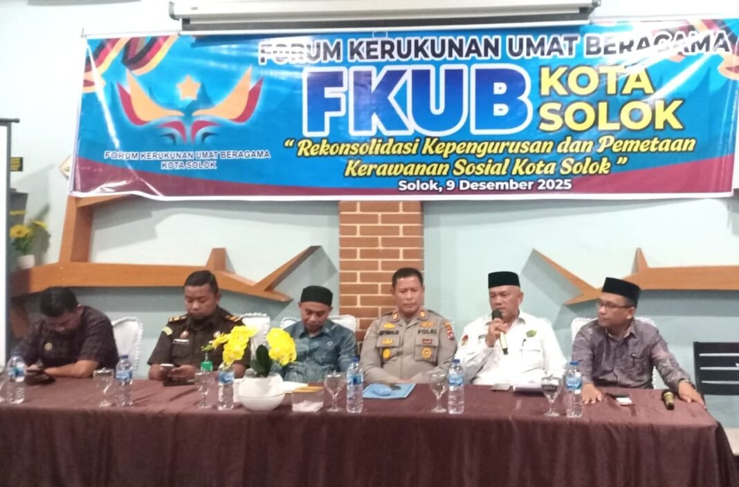 Kota Solok, investigasi.news-Forum Kerukunan Umat Beragama (FKUB) Kota Solok menggelar Rekonsolidasi Kepengurusan dan Pemetaan Kerawanan Sosial di DeRalizion Kota Solok, Selasa (09/12/25).