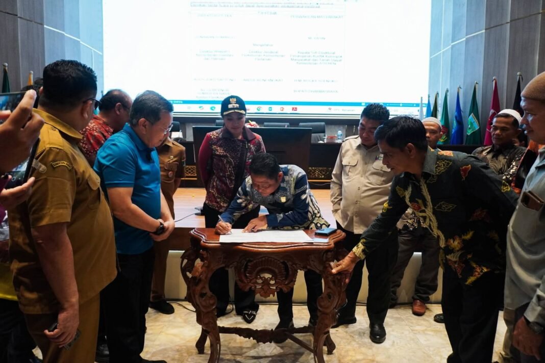 Foto: Asisten Perekonomian dan Pembangunan Yefrinaldi saat penandatanganan berita acara antara PT TKA dan masyarakat adat di Padang beberapa waktu lalu. Ardi