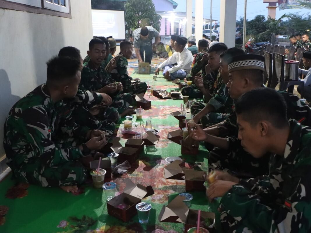 H-1, Anggota Satgas TMMD 127 Kodim 0430/BA Gelar Buka Bersama Masyarakat Desa Wonosari di Rumah Kades Usman Noviardi