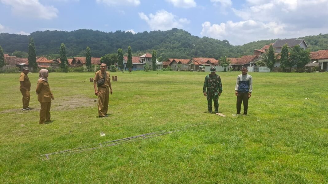 ​H-1 Penutupan TMMD, Pasiter Kodim 0713/Brebes dan Perangkat Desa Cikuya Cek Kesiapan Lapangan Upacara