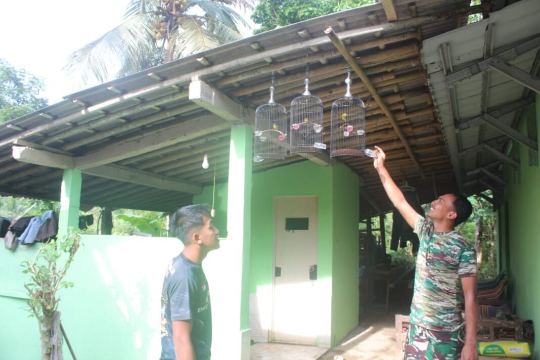 Kebumen — Di tengah padatnya aktivitas pembangunan dalam program TMMD Reguler ke-127 Kodim 0709/Kebumen, suasana hangat dan penuh keakraban terlihat di lokasi kegiatan. Salah satu anggota Satgas, Pratu Danang, membawa burung pleci peliharaannya sebagai hiburan sederhana bagi rekan-rekan prajurit setelah seharian berjibaku menyelesaikan sasaran fisik.